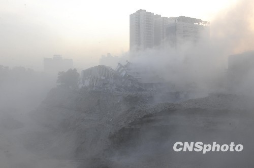 图为爆破后扬起的漫天灰尘。中新社发 刘震 摄