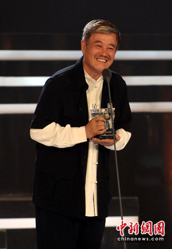 5月29日晚,第三届演艺名人公众形象满意度调查颁奖(华鼎奖)盛典在北京京西宾馆举行。曾志伟、韩三平、周迅、陈奕迅、容祖儿、李少红等近百位演艺界明星大腕齐聚一堂,现场见证象征“老百姓口碑”的各樽华鼎奖最终归宿。图为赵本山荣获第三届中国500名演艺名人公众形象满意度调查总榜冠军。中新社发 李学仕 摄