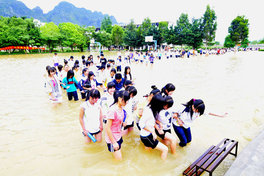 组图:广西强降雨灾区师生水上备高考(4)