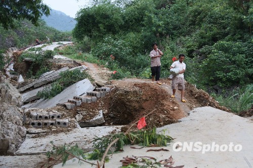 5月31日至6月1日,暴雨侵袭广西合山市,山洪暴发,将该市北泗乡灵台村与外界连通的唯一一条可通车的水泥公路拦腰冲断。