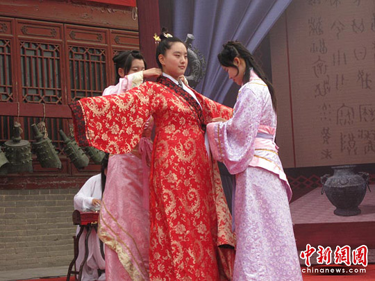 图:洛阳大学生周公庙上演“成人礼”(2)