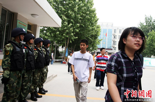 6月7日,河南郑州高考考点,特警在为考生保驾护航,当日,全国高考拉开大幕。