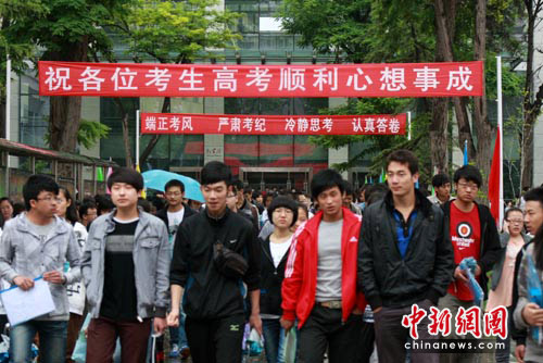 7日,兰州市3万多名考生在16个理科、13个文科、7个三职生考点迎来一年一度的“大考”。记者从兰州市招生办公室了解到,为更大程度地服务考生,今年兰州市公布的高考考点安排中,各考点都设置在了交通便利的普通高中。16时,记者在兰州市27中门口看到,许多家长在雨中等候,而兰州交警则尽力疏导交通为考生带来便捷。