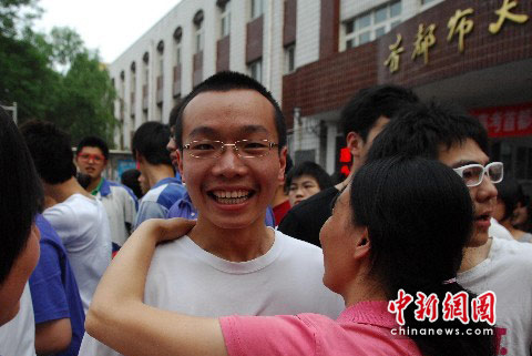 6月8日下午,2010年全国高考北京地区结束最后一科的考试,首都师范大学第二附属中学考点的考生结束考试后与家长相拥。中新社发 侯宇 摄