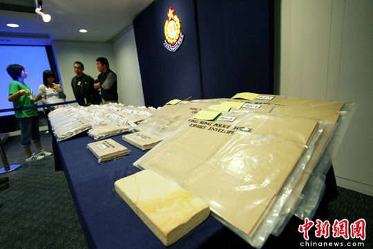 6月10日,香港警方召开记者会宣布破获毒品案。警方9日在彩虹及葵涌货柜码头,搜出70公斤可卡因,市值约6100万港元。行动中拘捕3名17至24岁男子。