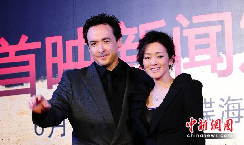 6月10日,跨国巨制《谍海风云》迎来全球首映日。影片主演巩俐携手约翰·库萨克共同亮相北京首映现场。中新社发 李学仕 摄