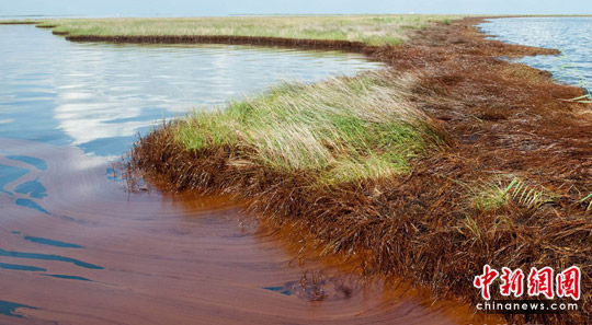 月11日,在美国路易斯安那州萨尔弗港附近,墨西哥湾泄漏原油侵蚀当地的湿地。