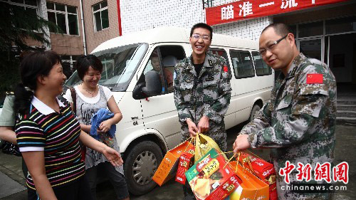 6月12日,成都军区总医院部分科室代表慰问即将赴黎战友,为战友送去端午粽子。中新社发 张浪 摄