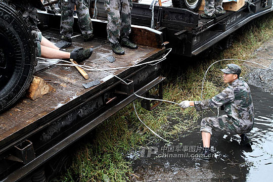 图:广空高炮某团在暴雨中进行装备铁路装载(6)