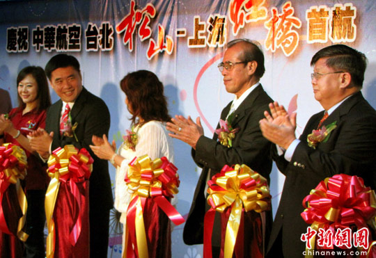 台北市长郝龙斌(左二)率团随机前往上海,参加世博台北文化周活动。中新社记者 宋吉河 摄