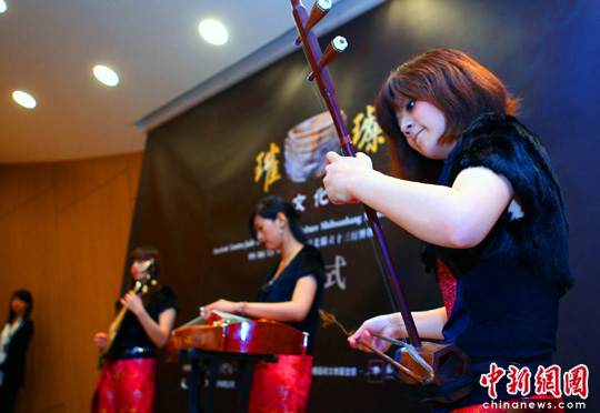 开幕式上台湾一乐团演奏中国民乐。中新社记者 宋吉河 摄