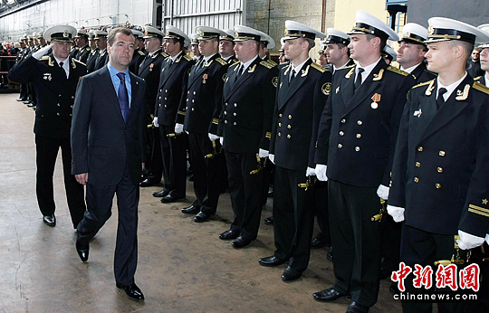 俄罗斯总统梅德韦杰夫6月15日参加了“北德文斯克”号核潜艇下水仪式。