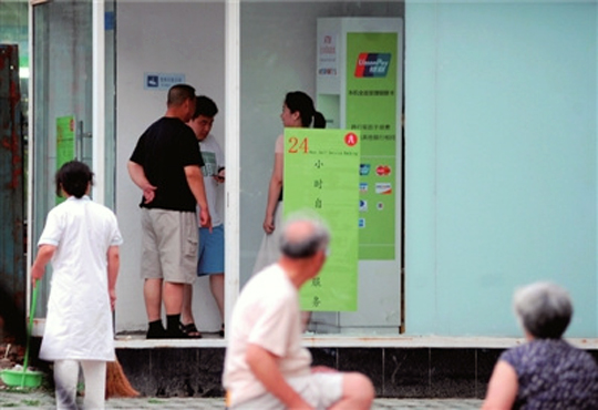 附近一家店铺老板说,6月10日前后的一天,看到两个30多岁的男子用报纸糊住两块玻璃门,“两人在里面捣鼓了三天左右”。报纸掀掉之后,就有了一台ATM机,玻璃房又锁了三天,正式对外“开放”。