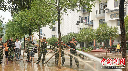 图为武警福建森林总队官兵清理洪水退去后的泰宁县城街道。中新社发 陈泽文 摄