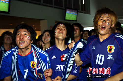 组图:世界杯小组赛深夜进行 女球迷为日本队加油(2)