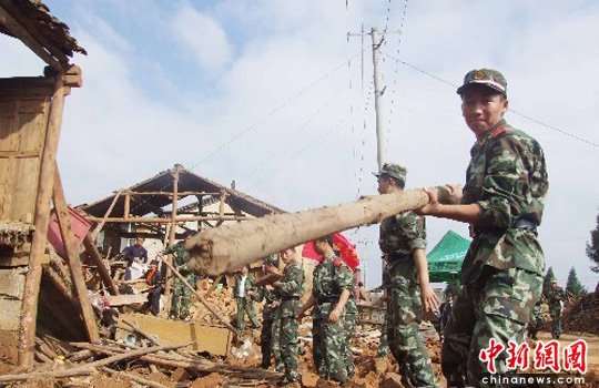 云南省曲靖市马龙县境内近日突降特大暴雨,连续7个小时的强降雨造成该县县城被淹,4个乡镇11个村委会100多个自然村5万多人受灾,1人死亡,165人受伤,4000多人被困。武警云南总队曲靖支队200名官兵第一时间展开救援。