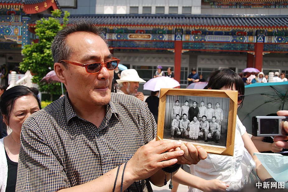 图为罗京的同学向记者展示他和罗京的合影。中新网记者 康澄林 摄