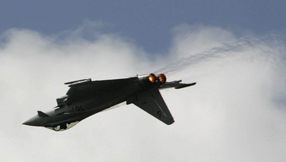 图为欧洲台风战斗机进行飞行表演。