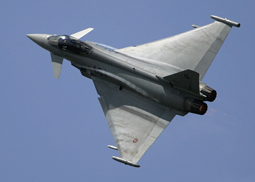 图为欧洲台风战斗机进行飞行表演。