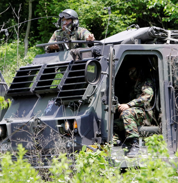 2009年6月18日,韩国陆军在江原道江陵市海岸一带举行防范入侵的海岸哨所军事演习。