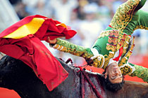 斗牛士被牛撞飞