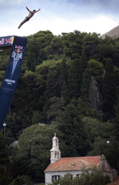 7月11日,悬崖跳水世界系列赛第三轮比赛在克罗地亚港口城市杜布罗夫尼克举行。