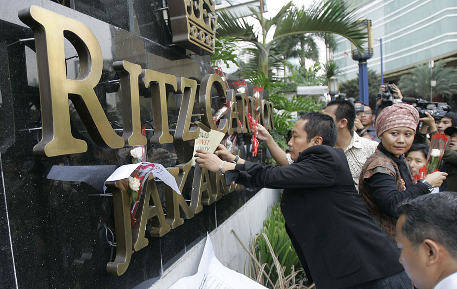 7月18日,印度尼西亚首都雅加达的民众纷纷来到发生爆炸的万豪酒店和丽嘉酒店,向死难者献花表示哀悼。