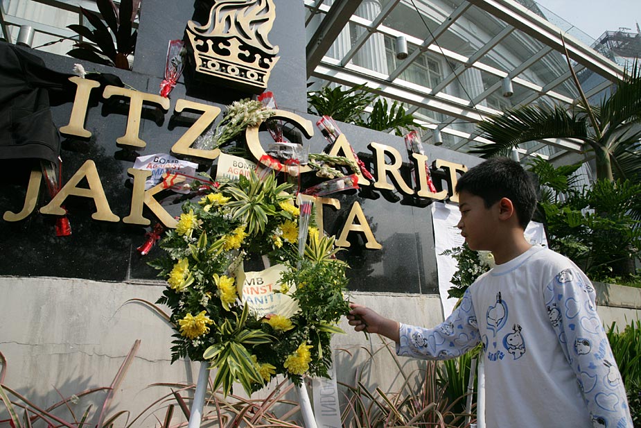 7月18日,印度尼西亚首都雅加达的民众纷纷来到发生爆炸的万豪酒店和丽嘉酒店,向死难者献花表示哀悼。