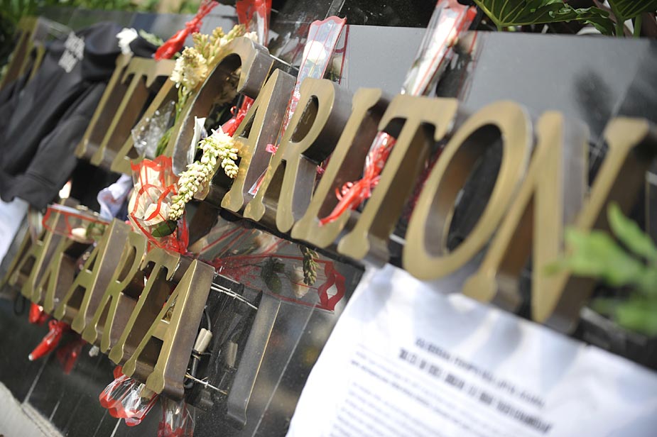 7月18日,印度尼西亚首都雅加达的民众纷纷来到发生爆炸的万豪酒店和丽嘉酒店,向死难者献花表示哀悼。