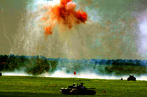中国、俄罗斯两军总参谋长,7月23日上午到沈阳军区洮南合同战术训练基地,观看“和平使命2009”联合反恐军事演习。双方以陆军和空军为主,中方参演部队包括1个陆军战斗群和1个空军战斗群。俄方参演兵力包括1个陆军加强摩步营、1个空降突击连和部分空军兵力,双方投入兵力两千多人。中新社发 宋吉河 摄