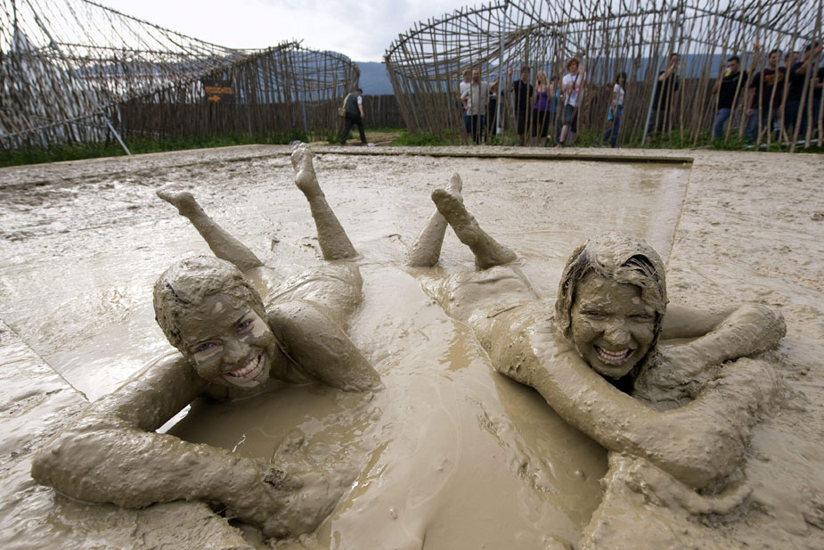 7月24日,在瑞士尼翁举行的第34届帕里奥音乐节上,狂热的音乐迷们在欣赏音乐的同时还尽情的享受了一下“泥浆浴”。