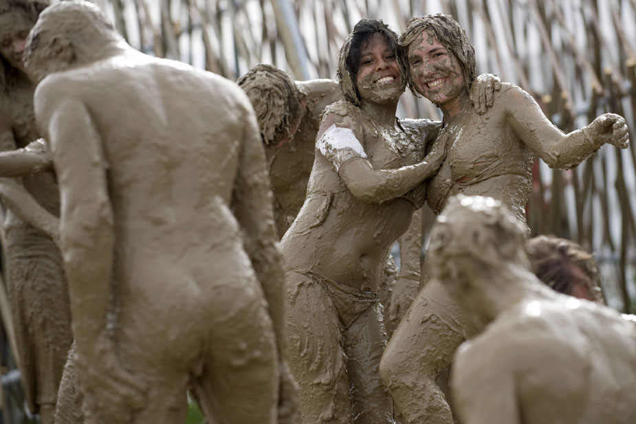 7月24日,在瑞士尼翁举行的第34届帕里奥音乐节上,狂热的音乐迷们在欣赏音乐的同时还尽情的享受了一下“泥浆浴”。