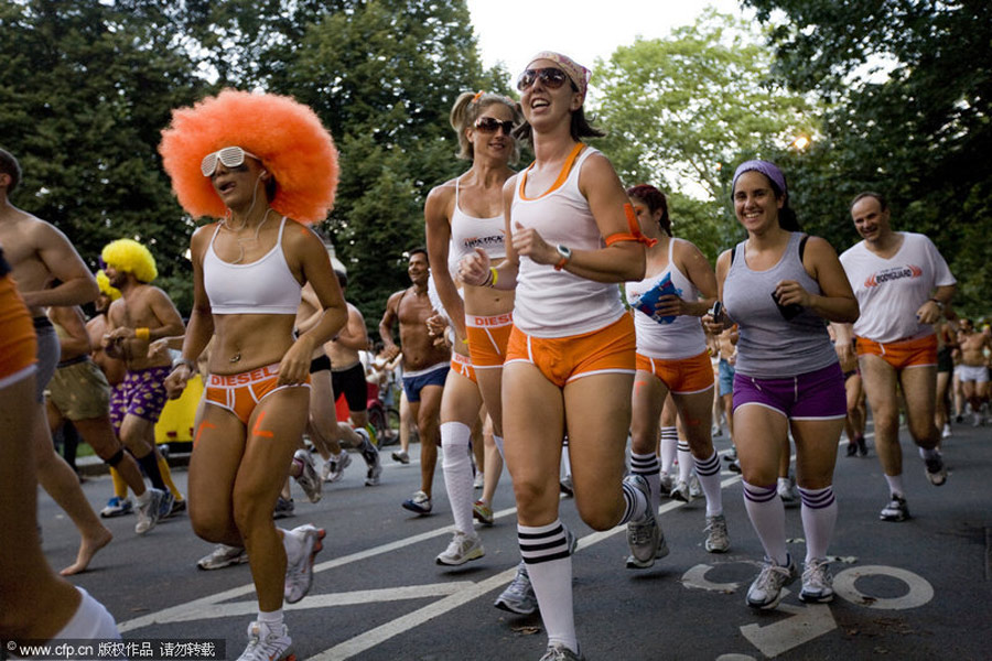 2009年7月,美国纽约,约200人参加了一场特殊的穿内裤跑步大赛。选手们身穿内衣裤从中央公园出发。比赛结束后,他们打破了“世界上人数最多的穿内裤跑步大赛”的吉尼斯世界纪录。