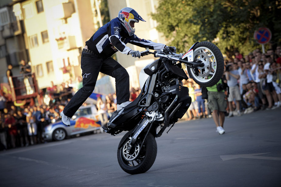当地时间26日,德国著名的特技表演大师Chris Pfeiffer在科索沃地区的Pristina进行一场街头表演。