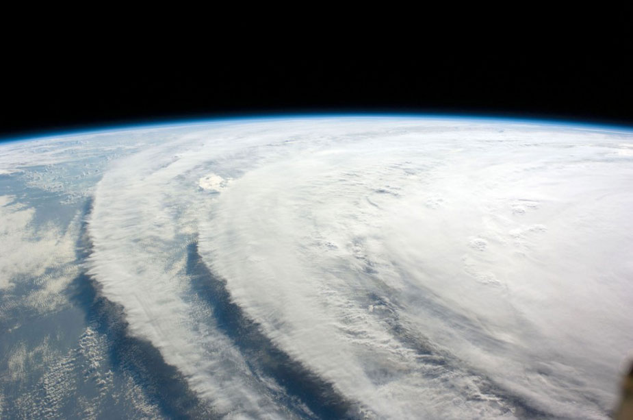 英国媒体近日公布了一组卫星上拍摄到的地球自然景观的照片,领观者颇感震撼。图为从卫星上拍到的飓风产生的气流。