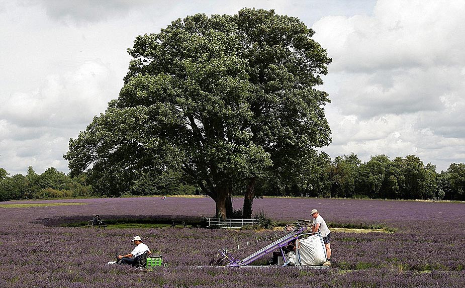 据英国媒体7月28日报道,英国班斯台镇最大的薰衣草田的主人举办了一年一度的薰衣草丰收节,迎来许多游客参观。