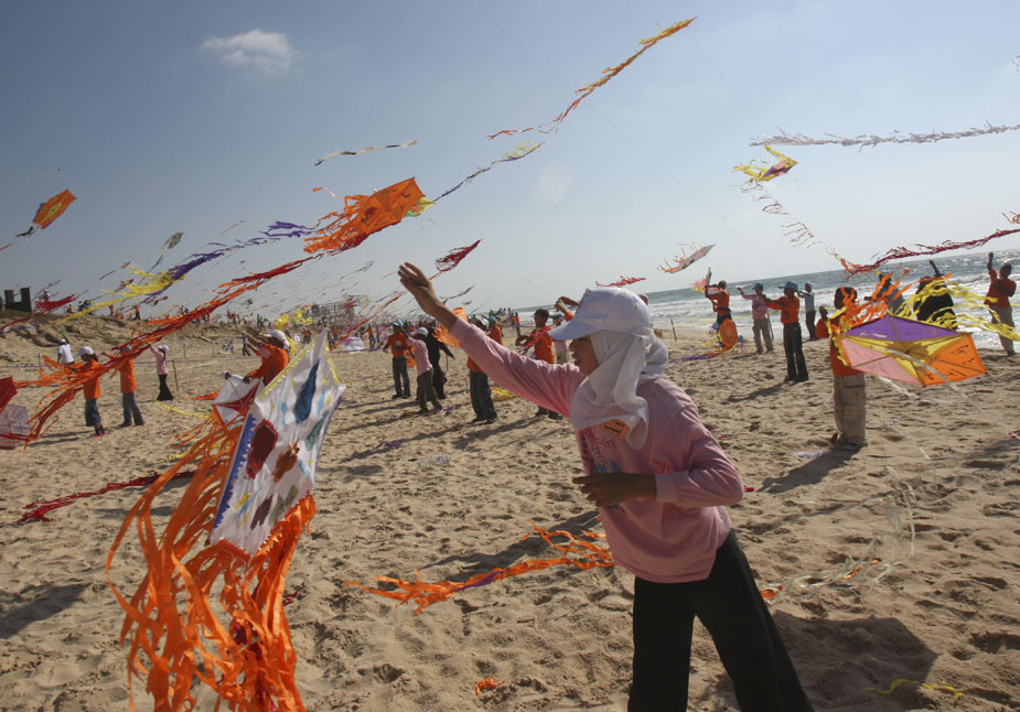 加沙儿童海滩上放风筝打破吉尼斯纪录