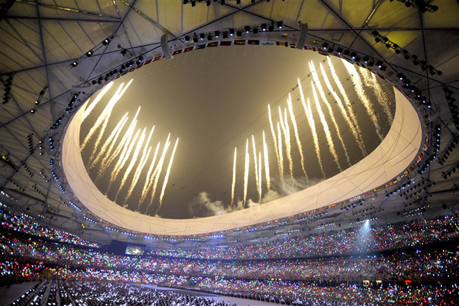 鸟巢夜未眠——从中轴线上的“脚印”烟花,到千缶齐鸣倒数,从梦幻五环惊艳“鸟巢”,到“夸父逐日”点燃祥云,整个北京奥运开幕式带给观众一波又一波的感叹。