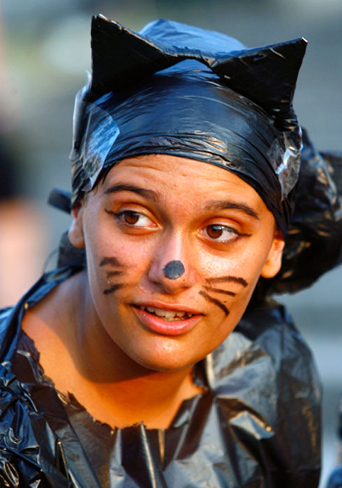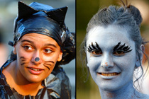 图为参加狂欢节的人们在脸上进行“涂鸦”。