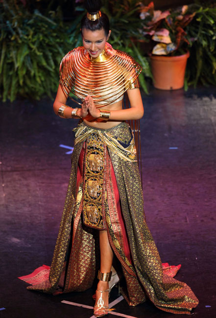 8月10日,2009年世界小姐大赛上,来自84个国家和地区的佳丽进行民族服饰的展示,各国佳丽分别穿着含有自己民族风格元素的时尚晚装亮相,现场顿时色彩斑斓,美不胜收。