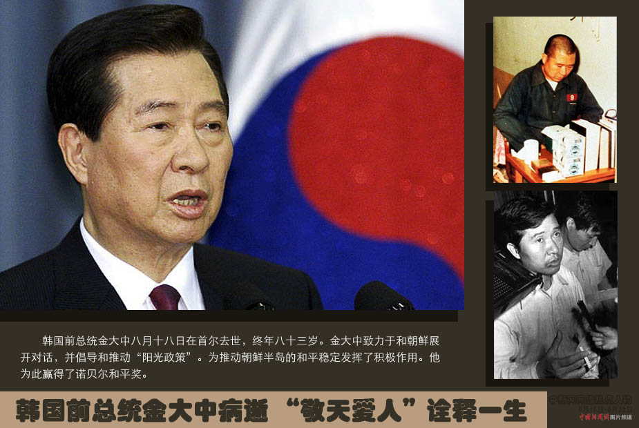 中新网本周热点人物之——金大中 他经历了暗杀、绑架、监禁、流亡等诸多磨难,几乎尝遍世间的辛酸苦辣,直接损害了他的健康。在朝鲜战争期间,他差点被处决。在一次针对他的绑架中,他险些被淹死。在一次精心策划的车祸中,他大难不死,但落下了终身残疾,走路只能跛着脚。