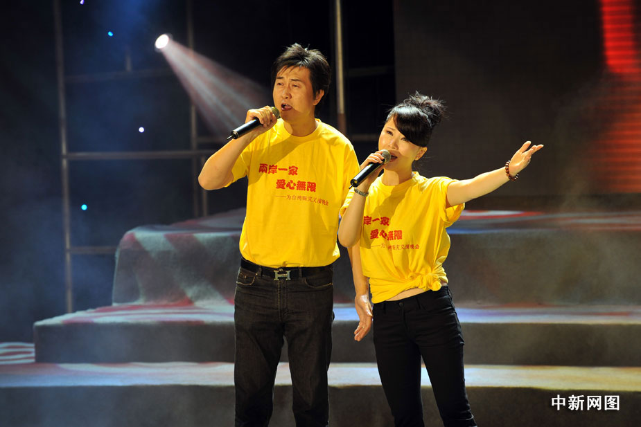 8月22日晚,北京举行“两岸一家 爱心无限”为台湾同胞赈灾义演晚会,大陆和台湾演艺界明星登台为台湾灾区同胞共献爱心,晚会临近结束时共收到各界捐款3000多万元。中新网记者 金硕 摄
