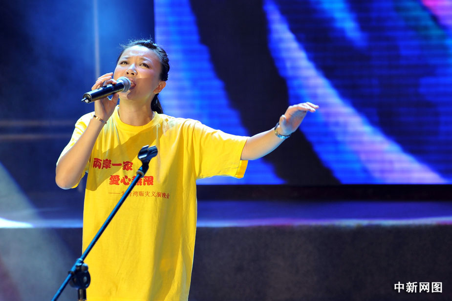 8月22日晚,北京举行“两岸一家 爱心无限”为台湾同胞赈灾义演晚会,大陆和台湾演艺界明星登台为台湾灾区同胞共献爱心,晚会临近结束时共收到各界捐款3000多万元。中新网记者 金硕 摄