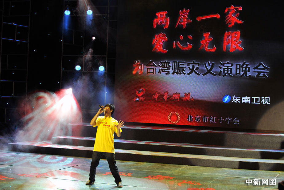 8月22日晚,北京举行“两岸一家 爱心无限”为台湾同胞赈灾义演晚会,大陆和台湾演艺界明星登台为台湾灾区同胞共献爱心,晚会临近结束时共收到各界捐款3000多万元。中新网记者 金硕 摄