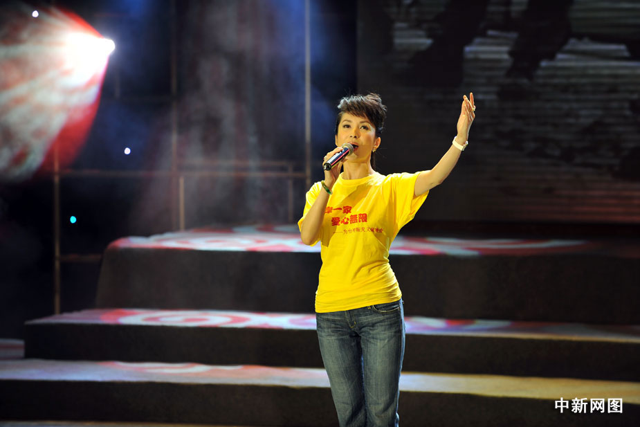 8月22日晚,北京举行“两岸一家 爱心无限”为台湾同胞赈灾义演晚会,大陆和台湾演艺界明星登台为台湾灾区同胞共献爱心,晚会临近结束时共收到各界捐款3000多万元。中新网记者 金硕 摄