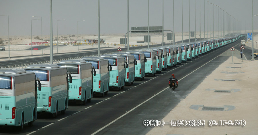 8月21日,325辆公交车在卡塔尔多哈的一条公路上列队行驶,打破了今年1月德国119辆公交车创下的吉尼斯世界纪录。点击观看详细内容