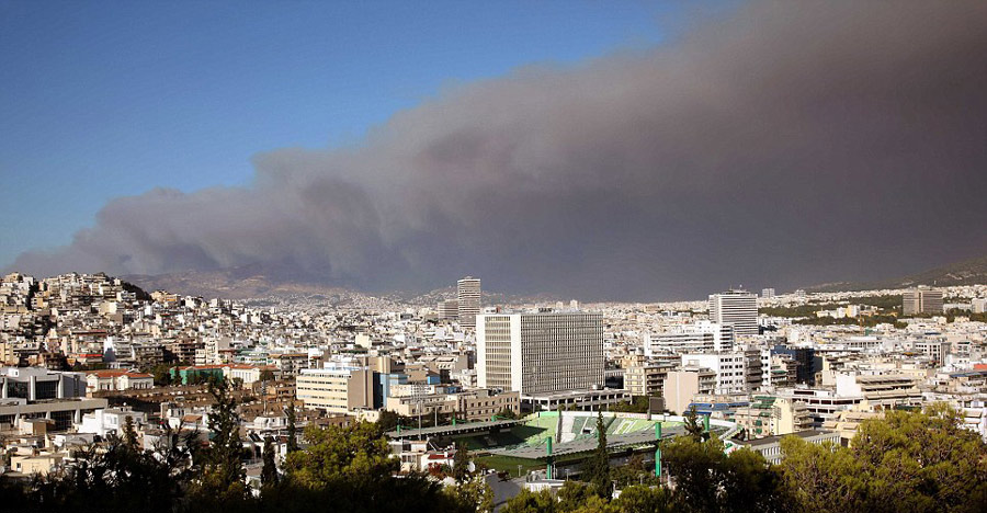 雅典北部山火愈演愈烈 上空浓烟滚滚
