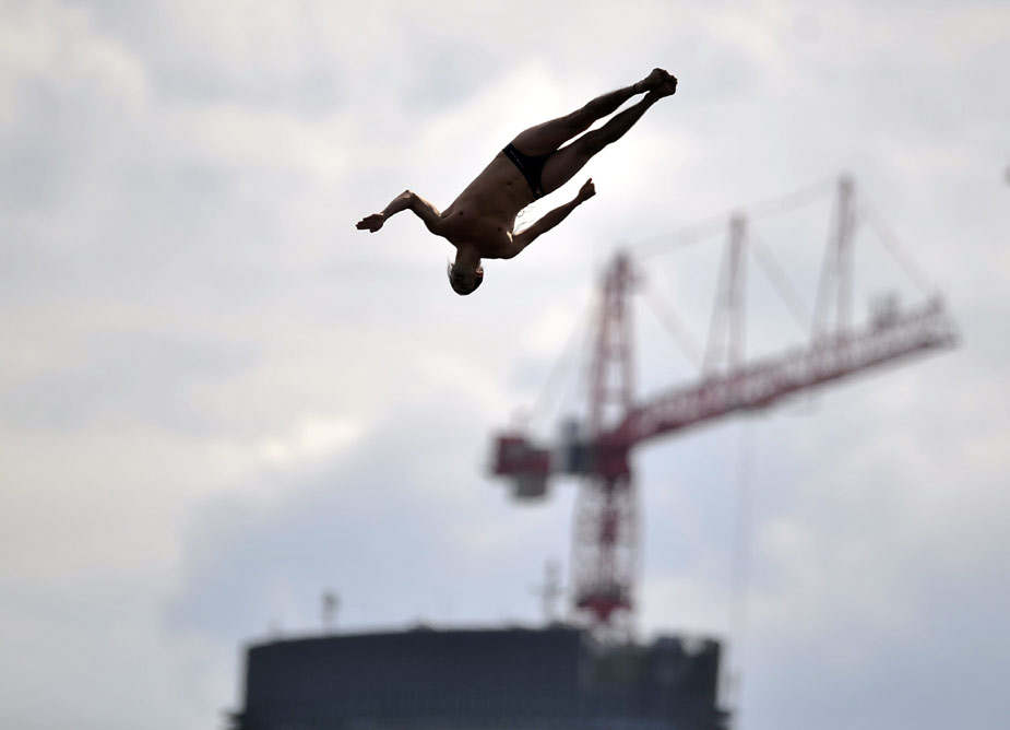 当地时间8月29日,世界悬崖跳水系列赛在德国汉堡举行。图片来源:中国新闻网