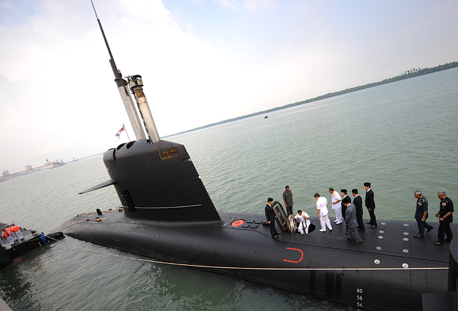 9月3日,由法国制造的马来西亚首艘“鲉鱼”级潜艇“东古·阿卜杜勒·拉赫曼”号驶入马来西亚首都吉隆坡的克朗港。图片来源:中国新闻网