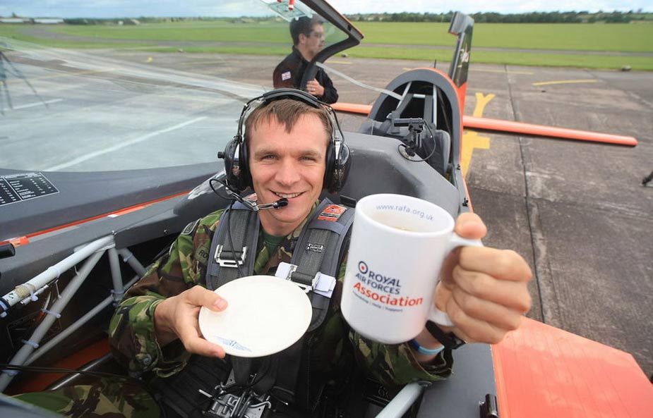3日,英军一名现役军人进行特殊的飞行表演——他边喝茶,边驾驶飞机在空中翻了14个筋斗。此举意在为英国皇家空军协会的一个基金会筹款。图片来源:中国网
